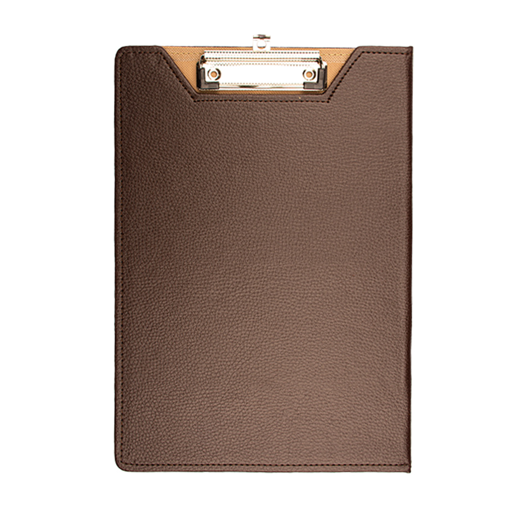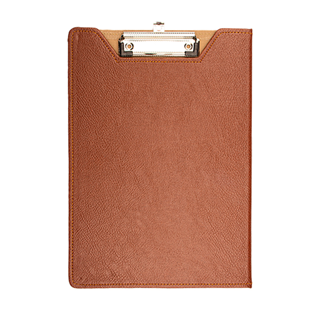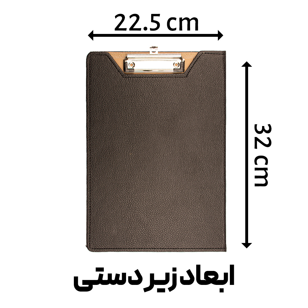 تخته شاسی سایز A4 تهیه شده از جنس چرم مصنوعی با حالت کلاسوری(تاشو)که رویه آن از جنس چرم مصنوعی بافت دار در ابعاد ۳۲x۲۲.۵x۳ سانتی متر که در حدود 470 گرم و داخل آن از جنس پارچه جودانه استفاده شده که دور دوخت شده است و دارای قفل فلزی برای نگهداری کاغذ می باشد